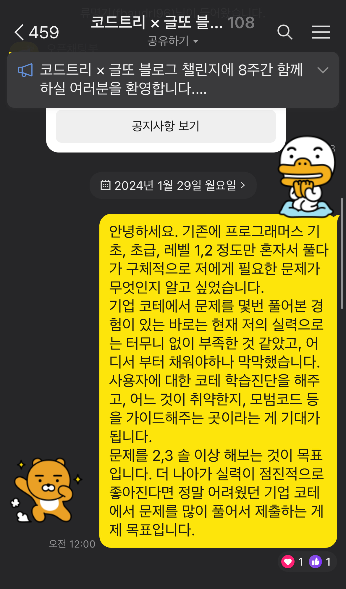 천리 길도 한걸음부터라고,, 기존의 나는 알고리즘, 자료구조에 체계적으로 공부한 적이 없다. 지나가다 이진탐색, 그래프니 뭐니 영상으로만 슬쩍 슬쩍 봤다. 기업 코테도 신청은 자유라고 n 번 응시는 했지만, 단 1솔도 제대로 해본 적없이 제출하거나 포기했었다.