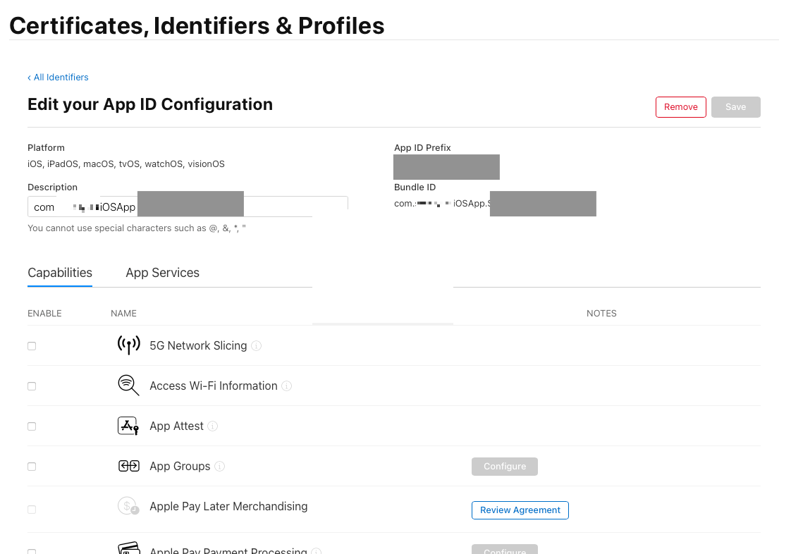 - Description, App ID Prefix(개발자계정 비용을 내면 생긴다.)