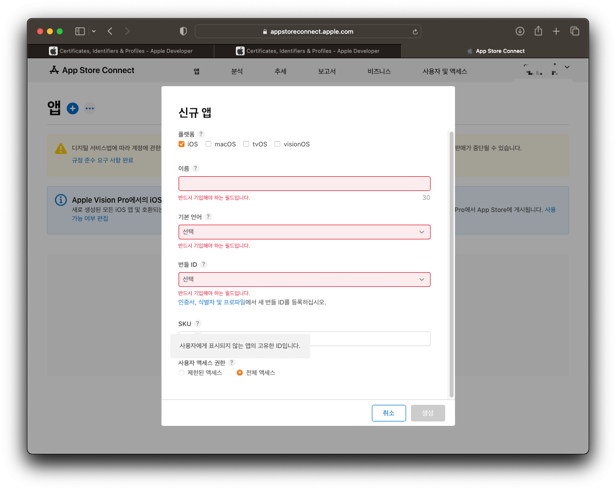 앱스토어 커넥트(App store Connect) 설정
