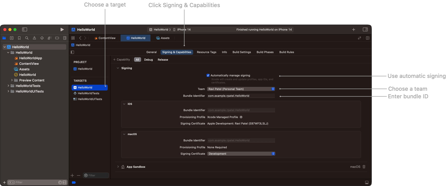 3. 이미 Apple Developer 친구비(1년마다 갱신해야하는 약 129,000원) 를 가지고 있기에,bundle ID: 엑스코드에서 bundle ID 설정하는게 프로젝트 만들 시에 생기고, Signing & Capabilities 에서도 Bundle Identifier 를 설정할 수 있다.