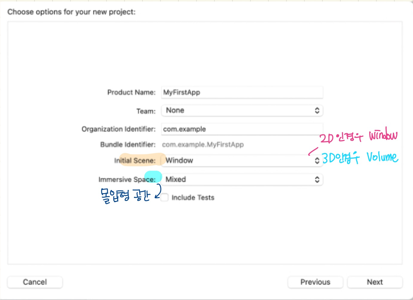 Xcode 에서 visionOS 를 만들기위한 프로젝트 생성과 초기 세팅