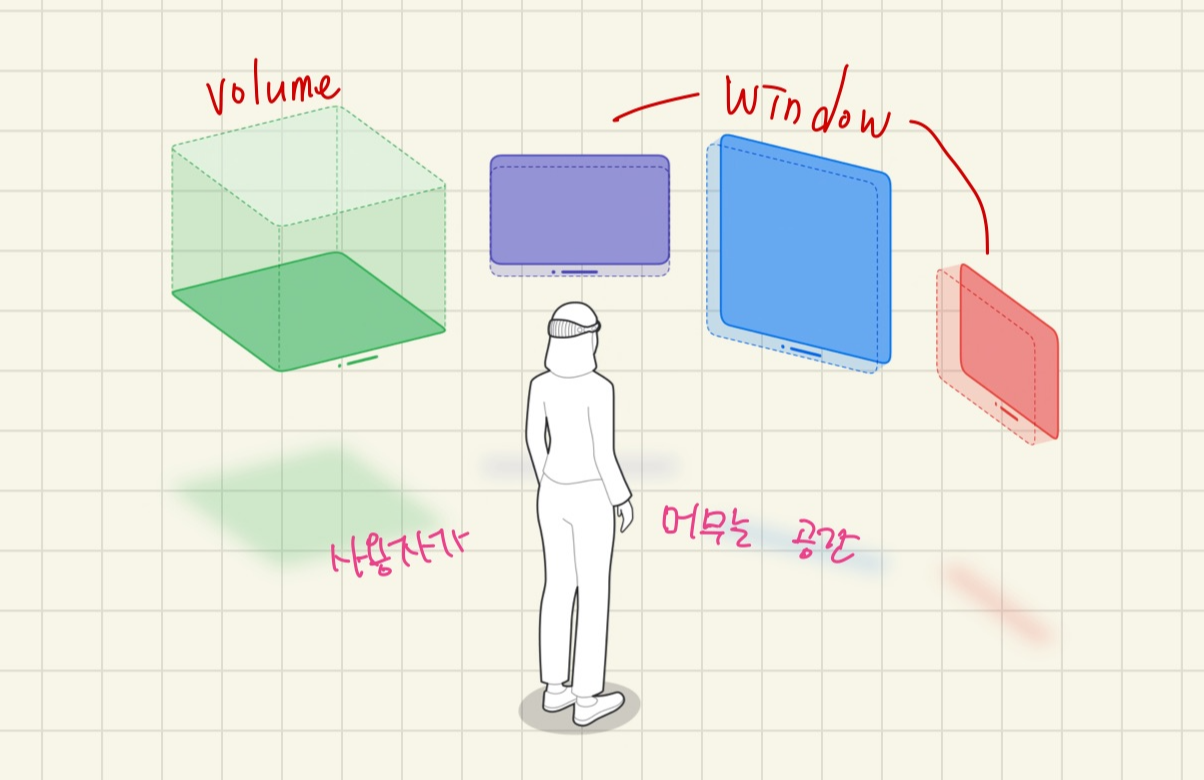 Volume 으로 앱에 입체감을 줄 수 있다. RealityKit, Unity 등을 사용해 3D 콘텐츠를 표시하는 SwiftUI 에서의 Scene 이다. 전체공간에서 어느각도에서든 바라볼 수 있다.Space는 여러 앱과 나란히 표시 가능, 요소 위치도 바꿀 수 있다.