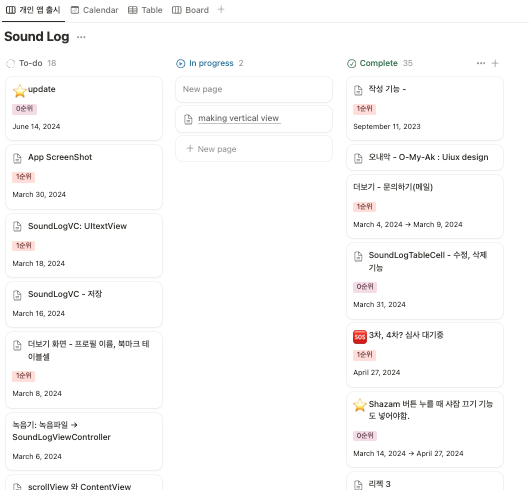 셋째, 처음으로 개인 앱 '소리의 기록'디자인 기획 개발 배포 완료, 물론 마음에 들거나 완벽하지는 않지만, 혼자서 처음부터 끝까지 해보고 부딪혔던 코드 문제에 대해 다른 팀프로젝트 팀원들의 조언도 받아서 해결했을 때의 쾌감이 컸다.