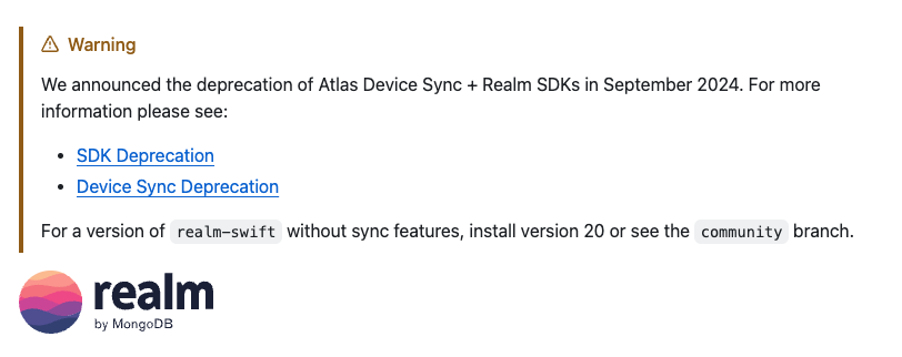 👯 🔥 발등에 불이 떨어졌군.. (이참에 앱의 기능과 UIUX 도 개선해야겠다.) 서드 파티 라이브러리는 업데이트 혹은 변화, 사라짐이 있을 수 있기에 Apple 에서 지원하는 기본 라이브러리를 써야겠다. SwiftData 나 CoreData 로 바꿔야할 계기가 된 것이다.